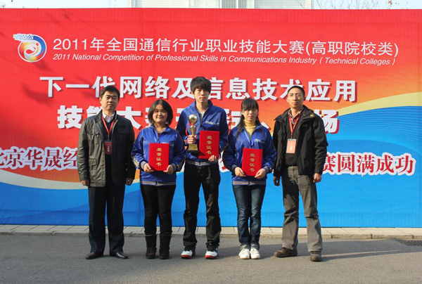 11月26日至27日,由工业和信息化部、人力资源和社会保障部、中华全国总工会、共青团中央四部委联合举办的2011年全国通信行业职业技能大赛(高职高专类)暨下一代网络及信息技术应用技能大赛在北京举行。本次大赛为国家一类赛事,共有来自全国50余所信息类高职院校的300多学生参加比赛。由校团委和信息电子工程学院选拔,MK(中国)网络09-1班李娟、张静、网络09-2班蔡伟建三位同学组成的参赛队,经过理论考试、技能操作等环节的激烈角逐,最终荣获大赛团体二等奖的佳绩。