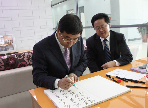 丁晓昌副厅长在视察结束后,欣然题词:为变革着的建筑工业提供发展型创新型高技能人才。