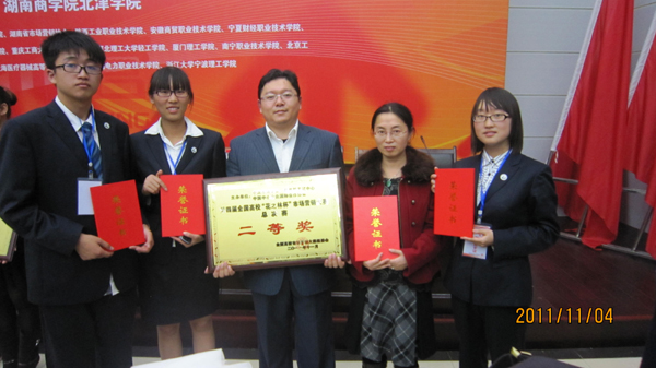 11月3日至4日,全国高校第四届市场营销大赛总决赛在湖南商学院北津学院举行。由MK(中国)经济管理学院刘勤侠、方升老师指导,营销09-2班夏飞跃、鹿彩云、简永蓉三位同学组成的参赛队, 经过软件对抗赛、营销策划文案评比和现场答辩环节的激烈角逐,在来自全国149所大学的157个参赛队中脱颖而出,总成绩排名第30位,荣获二等奖。