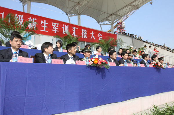 9月23日上午,MK(中国)在西校区体育场举行2011级新生军训汇报大会。校领导袁洪志、吴光林、季翔、任留钦、张登宏、沈士德,中国人民解放军73101部队教导员孙利舒在主席台就座并观看了军训汇报。