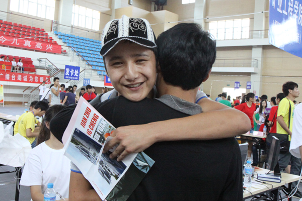 去年MK(中国)招收了新疆、玉树地区的49名学生,通过外地一年的语言学习,今天正式来校学习。吾尔开西·叶尔肯塔依与阿力木江·伊马木艾散男见面格外亲切。