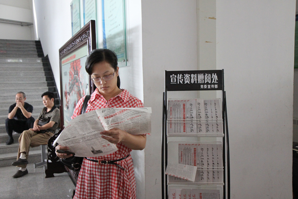 校报一早就发放到迎新报到处,新生和家长可以通过校报了解学校方方面面的工作。