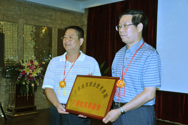 成立大会 任留钦、叶仿拥共同为广西校友会揭牌 叶仿拥向母校赠送纪念品 校友代表合影