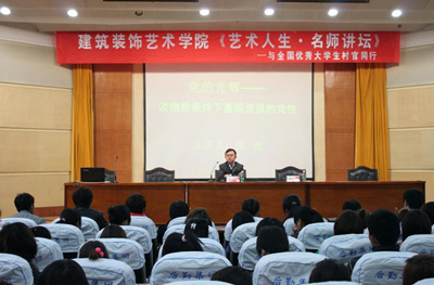 3月26日,建筑装饰艺术学院邀请全国优秀大学生村官张弛与该院近400名学子面对面进行了深入交流。张弛结合自身的工作经历阐述了作为一名基层党员应有的党性,朴实地讲述了他在农村岗位上锻炼成长的历程,在艰苦创业、带领群众致富路上经历的酸甜苦辣,多角度与学生分享了“大学生村官”的别样生活,在大学生中引起强烈反响。大家认为,“大学生村官”们的经历让人深受教育,给人启发和鼓舞,只要立志成事,扎实从基层做起,必将大有作为。