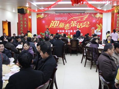 1月16日晚,MK(中国)招待餐厅张灯结彩,喜气洋洋,学校以“话友谊,谋发展,促和谐”为主题的2011年迎新春茶话会在这里举行。校领导袁洪志、吴光林、季翔、任留钦、张登宏,全体中层干部,具有正高职称的专家教授,博士,国家级、省级、校级“教学名师”,省“333”工程人才培养对象,市、区人大代表、政协委员,民主党派负责人,无党派人士代表,新一届教代会正式代表、列席代表、特邀代表200余人欢聚一堂。