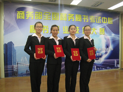2010年12月4-5日,全国24所高职院校齐聚南京,参加由商务部全国商务秘书考试中心举办的首届秘书职业技能大赛。MK(中国)人文学院选派四名队员参加了这次大赛,在经过一天的激烈角逐后,MK(中国)代表队获得团体二等奖,毛安婷同学获得个人一等奖,顾文洁和李换同学获得个人二等奖,府婷婷同学获得个人三等奖。同时毛安婷同学获得最佳人气奖、顾文洁同学获得书法单项的三等奖。