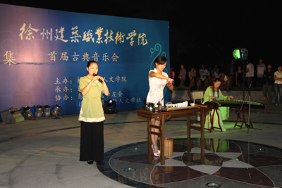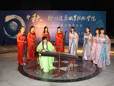9月20日晚,在清风明月的映衬下,由校党委宣传部、团委和人文学院共同举办,彭城书院承办的一场古典音乐在西校区圆形广场上演。来自徐州本地的艺术家们和人文学院的师生用古琴、古筝、古埙等民族乐器,演奏出一曲曲经典曲目,把观众们带入高雅的艺术世界。