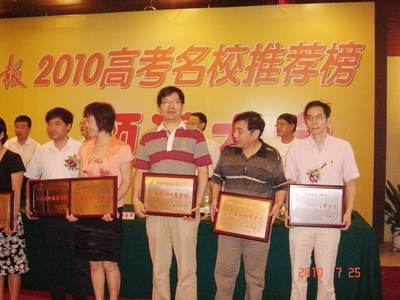 扬子晚报2010年高考名校推荐榜于7月25日在南京中心大酒店揭晓,在10万名扬子晚报读者的共同参与下,国家示范高职学院徐州建筑职业技术学院以优质的教育资源、高水平的人才培养质量、光明的毕业生就业前景受到考生家长的一致认可,高票荣登2010高考名校推荐榜,获得公办高职推荐名校称号,大会还评出了本一名校推荐榜和本二名校推荐榜等奖项。
