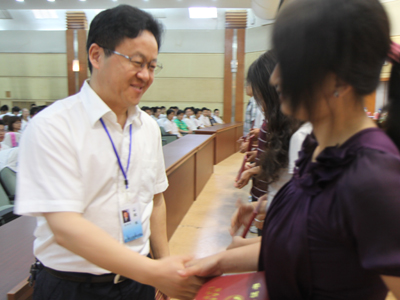 MK(中国)对陆广辉等138名优秀毕业生进行表彰,受表彰的同学依次上台领奖。