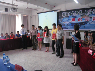 此次竞赛全校共十二支代表队报名参加,分为初赛和决赛两场进行,6月4日举办了两场淘汰赛,共选出了六个代表队参加决赛精彩角逐。决赛分为三个环节,比赛的内容涉及环保知识、党团知识和世博知识。在必答环节中,各代表队旗鼓相当,第二轮的抢答环节将整场比赛推向了高潮,最后一轮的跨栏环节更是惊险刺激,将现场的比分拉开了距离。最后人文学院代表队在比赛中摘得桂冠,市政学院、外基学院代表队分获得二等奖,装饰学院、设备学院和经管学院代表队分获三等奖。