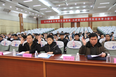 与会代表审议通过校行政工作报告、校财务预决算报告和大会决议(草案)