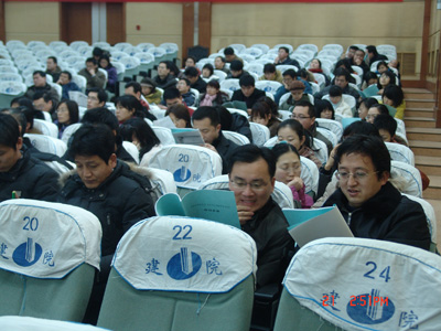 本次培训共分为2场,第一场对全校各院系部分教学主任和教学秘书进行培训,第二场对全院教师进行培训。教务处邀请了南京工业职业技术学院孟庆杰主任主讲,培训过程以演示讲解为主,系统讲解了顶岗实训和毕业设计管理系统软件的特点,功能,各模块的使用,并解答了教师提出的问题。