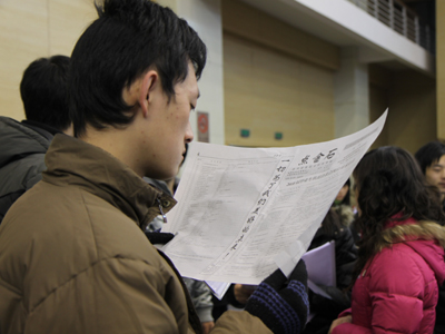 毕业生正在阅读用人单位的招聘简章