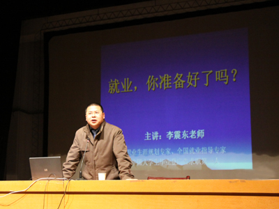 李震东老师还建议大学生应先做人后做事,注重自身综合素质的提高,使自己成为复合型人才,并着重从简历制作和面试技巧及礼仪等方面细致讲解了成功就业应做的准备。他说,简历就是推销自己的广告,要做得精彩、有个性,要重内容而不是形式。他还告诫广大学子,求职最重要的是坚持不懈,只有拥有了这种精神,才能成为求职场中的胜利者。