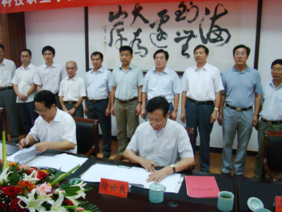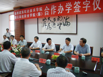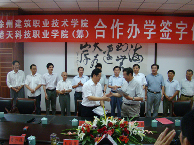 8月8月,校党委书记王旭善、院长袁洪志、副院长季翔一行7人到宿迁,与楚天科技职业学院(筹)签定合作办学协议。