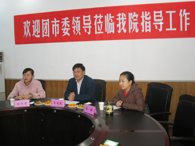 任留钦介绍了我院发展历程、办学规模及所取得的成果。梁惠向团市委领导汇报了我院共青团工作的发展状况,主要就组织构建、阵地建设、队伍建设、思想政治教育、校园文化建设、青年志愿者工作、校地共建等方面进行了重点汇报。