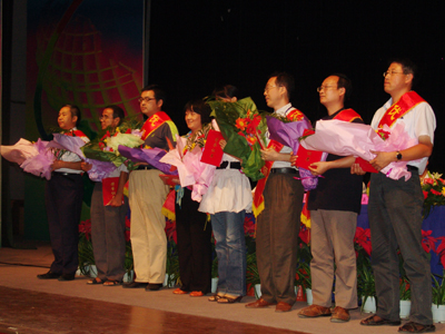 副院长季翔宣读了表彰决定。在喜庆的乐曲声中,院优秀教师、优秀辅导员和优秀教育工作者依次上台接受表彰。优秀教师代表人文与社会科学系佘敏老师和优秀辅导员代表土木工程学院