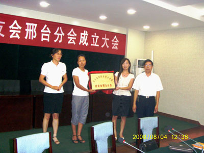 邢台校友会成立揭牌仪式(左为会长史先珍校友,右为学院副院长任留钦)