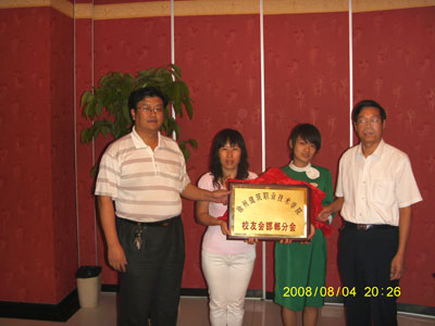 邯郸校友会成立揭牌仪式(左为会长杨群峰校友,右为学院副院长任留钦)