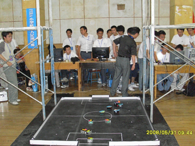 我院机电工程系“机电1队”荣获FIRA足球机器人(小型组)5:5比赛的亚军。河海大学e龙队摘取桂冠,季军则被南京理工大学njust队收入囊中。
