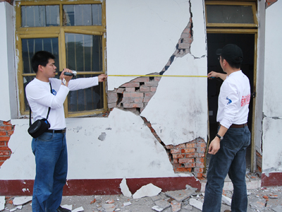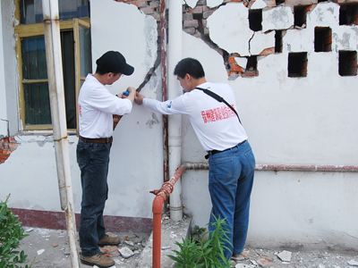 今晨获悉,我院赴四川地震灾区工作组一行在灾区积极开展各项工作。昨天到绵阳市区、绵阳市青义镇、江油市等地方继续收集典型建筑结构损毁情况、典型事迹,参与了由绵阳市震后危房鉴定组牵头的对绵阳武警支队房屋震损情况的鉴定,评估了绵阳市第十二中学、绵阳市涪城职业教育中心的震害情况。下午,在江油市建设局的安排和委托下,和当地工程技术人员一起,分成三组对数个社区共计30余栋住宅楼进行了危房鉴定,晚上十点回到四川建院防震棚居住。