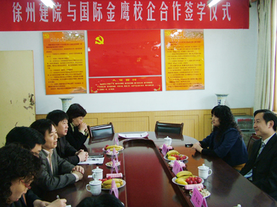 4月24日,我院副院长张登宏代表学院与徐州金鹰国际物业管理有限公司在人文与社会科学系会议室签订校企合作协议书,并举行了揭牌仪式。双方就人文与社会科学系的“社区管理与服务”、“文秘”等专业学生的就业和实习、金鹰国际员工培训等问题进行了深入探讨。校企合作办公室领导、人文与社会科学系党政领导出席了揭牌仪式。徐州金鹰国际物业管理有限公司副总监李超一行三人还参观了校园和实验实训基地等。