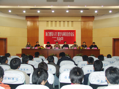 12月28日下午,我院在学术报告厅举办了海门建筑人才、智力与项目合作论坛。我院院长袁洪志、副院长季翔、海门市人事局局长蔡建新、海门市建筑工程管理局局长刘亚珍、徐州市人才服务中心主任王涛、海门市人事局副局长杨颖芳、海门市建筑工程管理局副局长邵慧出席会议并在主席台就座。活动由我院副院长张登宏主持。参加活动的还有海门市有关政府部门和企业的领导,徐州市有关政府部门的领导以及我院的部分师生。
