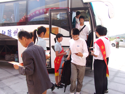 新生车一到,服务人员立刻递上我院的报到须知