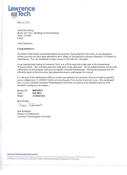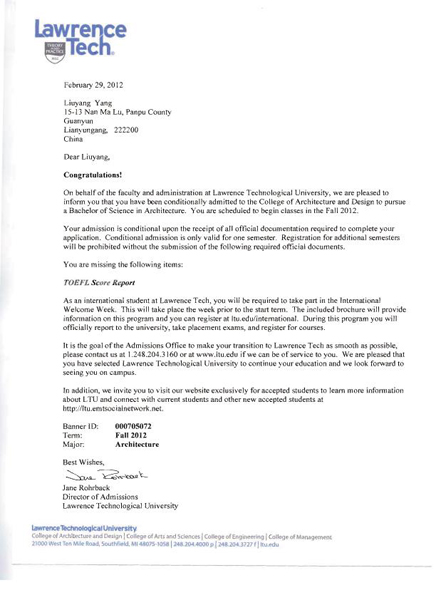 杨留洋录取通知书