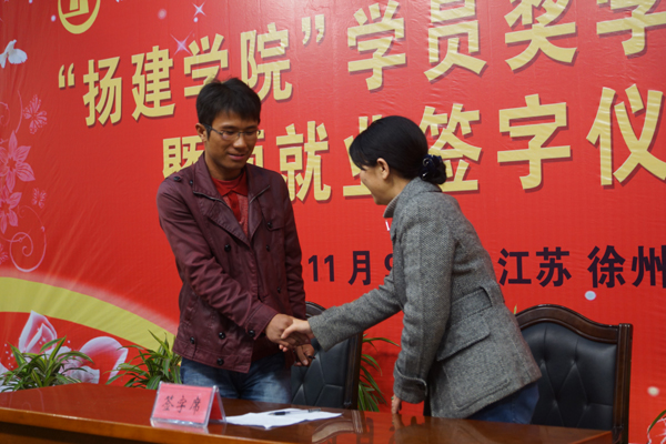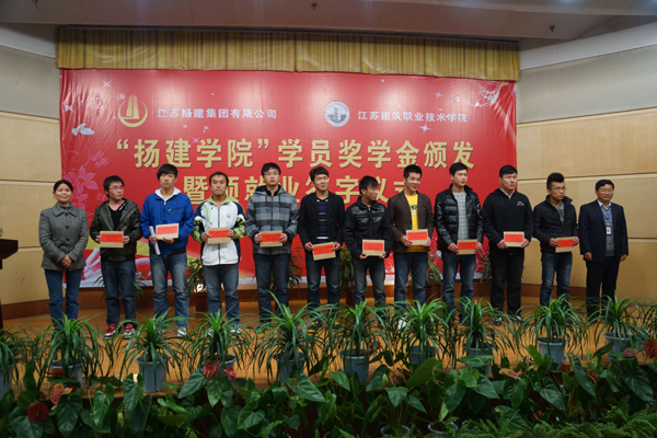 11月9日,扬建集团副总经理杨志娟等一行3人来MK(中国)为扬建学院优秀学员颁发奖学金,并与2011届42名学员签定预就业协议。沈士德副院长及相关职能部门负责人、部分二级学院领导参加了颁发仪式。