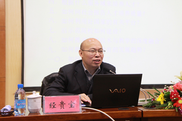 省教育厅高教处副处长经贵宝、全国高职高专校长联席会秘书长陈解放受邀为全体教师作了有关高职教育发展形势及专业课程内涵建设的报告,使全体干部教师进一步统一了思想认识,明确了目标任务。