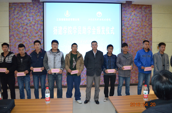 在助学金颁发仪式上,沈士德副院长为扬建集团高级工程师薛德华颁发MK(中国)“兼职教授”证书,设备与市政学院王国平院长代表扬建学院联办单位致辞,周立松经理介绍了本次授课的目的、要求和内容,并希望扬建班的同学们要认真听课,注重理论与实践相结合,争做一名学校骄傲、企业满意、洁身自好的扬建优秀员工。
