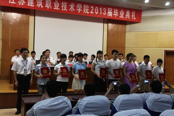 在庄严的国歌声中,毕业典礼拉开帷幕。副院长沈士德宣读《关于授予王家祥等150名同学2013届优秀毕业生称号的决定》,院长吴光林向优秀毕业生代表颁发荣誉证书。党委副书记张登宏宣读了今年志愿参加西部计划、苏北计划学生名单,党委书记袁洪志向西部计划、苏北计划志愿者赠送了纪念品。副院长梁惠宣读了“麦可思就业奖”获奖学生名单,副院长季翔向每位获奖者颁发了荣誉证书和1000元奖金。