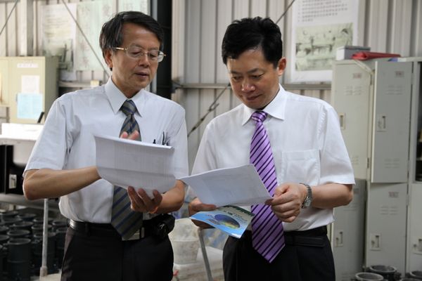 与台湾明新科技大学工学院翁文炉院长在实训室交流实训课程设置