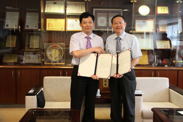 与台湾环球科技大学许舒翔校长签订两校学术合作议定书
