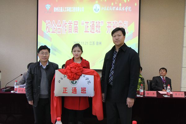 徐州正通人工环境工程有限公司总经理赵昌生、设备学院党总支书记陈宏振分别讲话,任陕磊代表首届“正通班”学员发言。校企合作办公室、实验实训部、设备学院相关领导及首届“正通”班59名同学参加了活动。(设备学院 刘爱萍)