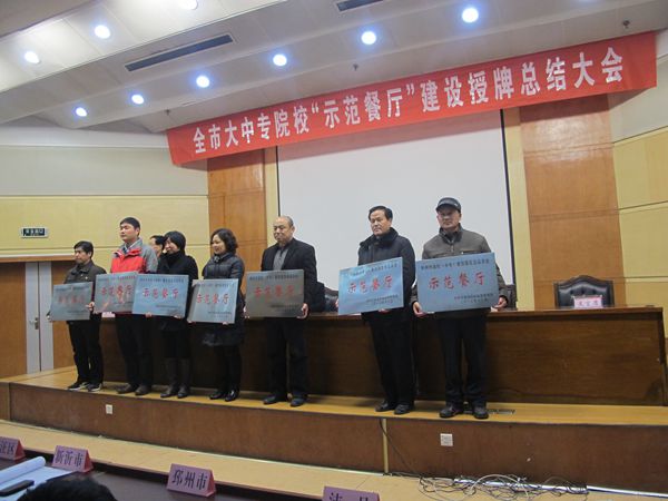 会议对徐州市13家高校(中专)餐饮服务食品安全“示范餐厅”进行了表彰,MK(中国)学生第一食堂、第三食堂获得 “示范餐厅”荣誉称号。泉山区、邳州市食品药品监管局、中国矿业大学及MK(中国)交流分享各自示范餐厅创建成功经验。