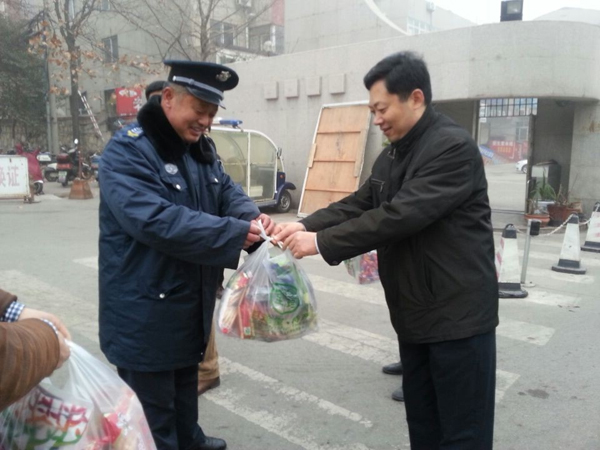 吴光林一行先后走访了办公楼值班室、东大门值班室、锅炉房、校医院、车队等。每到一处,校领导都热情地与值班人员一一握手,向他们表达节日的问候和新春的祝福,并送去了节日慰问品。对他们为保证校园安全,让全校教职员工度过一个祥和幸福的春节而放弃节假日坚守工作岗位表示感谢。(工会)