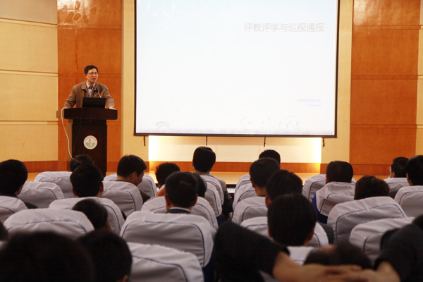 质量考核办公室主任华国平则用大量数据和图片对我院近期的评教、评学情况和教学巡视情况在会议现场当场通报,数据和图片“毫不留情”,让所有人直面问题,加强自身整改。