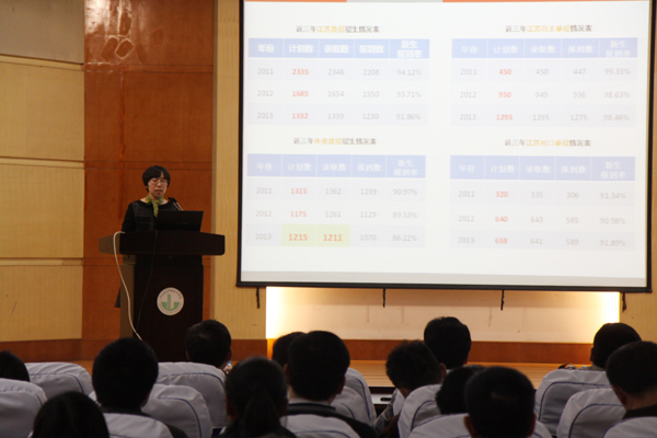 招生就业处处长宋丹萍以“我们的学生都去哪儿了”开题,对MK(中国)近三年的生源报到情况、毕业生就业状况、就业困难程度、就业现状满意度进行了不同学院、不同专业之间的数据解读,指出了包括就业优势、专业爱好、学校品牌的考生报考MK(中国)的主要原因,最后提出了招生就业工作中要正确处理好三个方面的关系:“好招生”与“招好生”的关系,慎重对待新开专业和专业停办和“好就业”与“就好业”的关系。