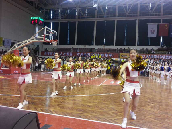 篮球啦啦操随场表演和比赛,使观众在观赏篮球健儿斗智斗勇的激烈比赛场面之时,还可在比赛休息期间欣赏到青年大学生精彩的啦啦操表演,全面感受到力量与技巧的交织,艺术与美的融合。
