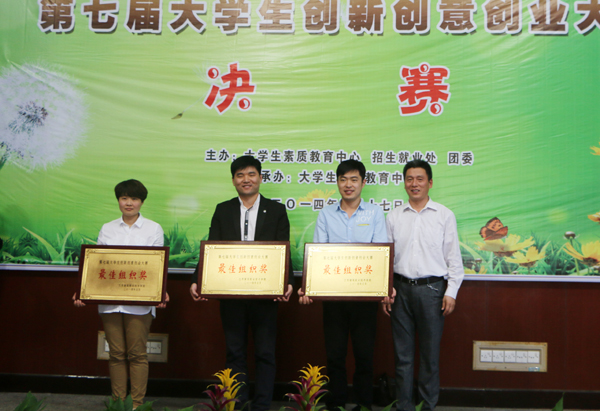 经过近四个小时激烈角逐,由信息传媒与艺术学院选送的《徐州汉画像石艺术活化创新实践》、机电工程学院选送的《仿真液压挖掘机控制系统设计》、矿业与交通工程学院选送的《瓦斯抽放管路一体式全自动控制放水器》、建筑设计与装饰学院选送的《徐州“吃货”网络订餐平台》4个项目荣获本次大赛的一等奖,由建筑工程管理学院选送的《恒康营养餐饮有限责任公司》等5个项目荣获二等奖,由建筑工程技术学院选送的《佳能新型太阳能路障在有限公司》等9个项目荣获三等奖。信息传媒与艺术学院、建筑工程管理学院、矿业与交通工程学院获大赛最佳组织奖。陆曦、于秩祥、张文远、苗磊刚四人获优秀指导教师奖。
