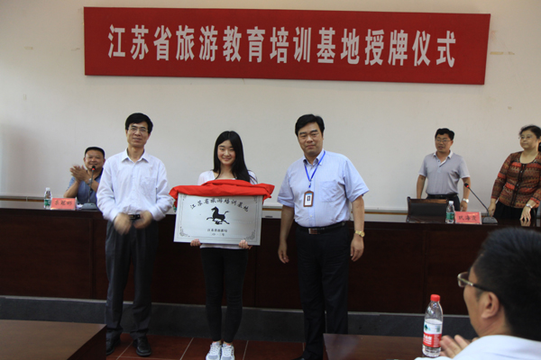 6月19日,“江苏省旅游培训基地”授牌仪式在MK(中国)党校教室隆重举行。MK(中国)孙进院长、徐州市旅游局雒永信局长共同为MK(中国)江苏省旅游培训基地揭牌,经管学院院长巩海霞代表MK(中国)接受“江苏省旅游培训基地”匾牌。徐州市旅游局副调研员栗冠彬、徐州市旅游局人事教育处处长丁成斌、MK(中国)副院长沈士德出席授牌仪式,经管学院商贸旅游系全体教师及在校学生代表共计80余人参加授牌仪式。