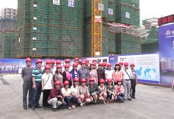 在中亿丰建设集团的现代传媒广场项目施工现场,项目主管、集团总工程师李国建带领大家参观了施工现场,介绍了项目施工过程中使用的临地铁深基坑分坑施工技术、超高层建筑施工液压爬模技术等新技术,并就一些关键技术、施工工艺进行了交流探讨。