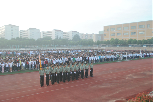 9月1日,新学期开学第一天,学工处在西田径场隆重举行了新学期第一次升国旗活动。全体二、三年级在校生参加了此次升旗仪式。