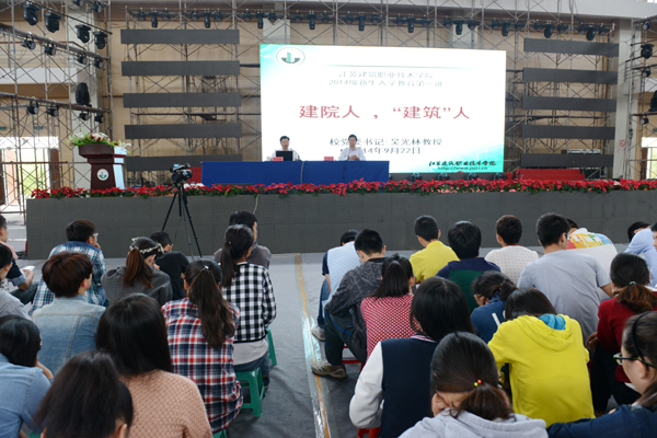 吴书记开宗明义地指出,“从同学们进入学校那一天起,就是江苏建院的一份子了,就是一名‘建院人’,但是只有通过同学们的努力学习,加上老师们的辛勤培养,认真塑造人生,才能真正成长为一名有理想、有抱负、有作为的优秀建院学子。”