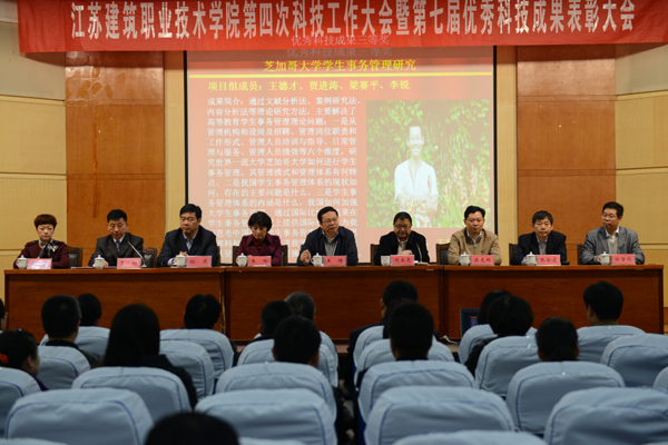 刘宗尧主席发表重要致辞,他说,江苏建筑学院今天隆重召开科技工作大会,标志着江苏建院从职业技术高等教育向研究型大学战略转型中,迈出了坚实的步伐,必将为培养更多高技术人才、推出更多科研成果、服务和推出徐州乃至全省加快实施创新驱动战略,产生重要而深刻的影响。