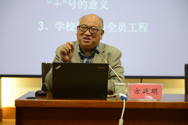 方延明教授在报告中指出,学校形象就是学校的知名度、公信力、美誉度,就是培养了有口皆碑的好学生、好的科研成果、引领的先进文化、有影响的人和事,树立学校良好形象必须做好学校新闻宣传工作。方教授围绕学校形象塑造主题,以自己深厚的新闻理论和丰富的新闻实践经历,深入浅出、生动形象地讲解了学校新闻宣传的人、事、会“三大板块”,区域定位、区域特质、区域区隔“三角架场”,分析了工作常态、突发事件两种新闻策划对象。方教授说,好稿件必须事实清楚、结构合理、文采斐然,必须是好的新闻题材、主题、角度、背景、结构,同时要重视细节把握。做好新闻宣传工作,新闻宣传工作者必须具有强烈的新闻意识、良好的人文素养,具有塑造人的“气象”,同时必须具备执著的职业理想与责任担当。方教授说,现在考核领导干部有六大指标,媒体素养是其中之一。他还在讲座中用敏于学习、汇百家之长、登堂入室三句话与参加报告会的领导、老师和广大同学共勉。(网宣)