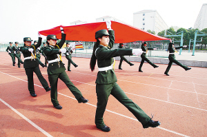 据了解,国旗班以升旗、降旗、护旗、爱旗为主要职责,女子国旗班成立后,与男子国旗班轮流承担每月初全校的升旗仪式以及学校大型活动的升国旗仪式。