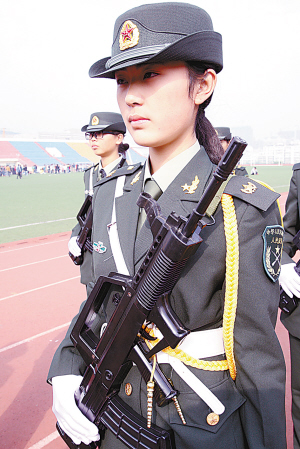 该校英语14-1班的卢健同学笑着说:“第一次看到女子国旗班,就为这些‘高大上’的女神们止不住激动赞叹。身着军装的她们很霸气,一番别有味道的气质。”